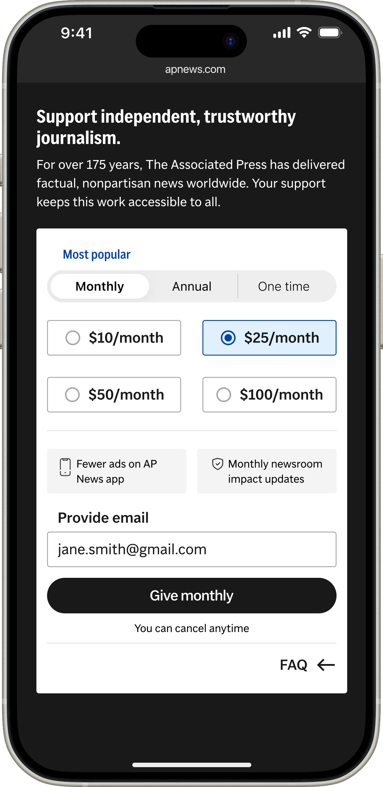 Rebuilt AP’s donation conversion experience to support a $1M fundraising goal